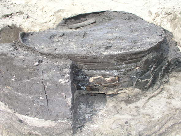 - Archeologisch hout komt bijna altijd tevoorschijn in een waterverzadigde, zuurstofarme context. (Anaërobe) bacteriën en hydrolyse tastten dit hout aan, met een extreem fragiel, cellulosearm hout als gevolg. Het natte hout dat we opgraven ziet er bijzonder goed uit, maar is een lege structuur, gevuld met water. Het behoudt zijn vorm maar voelt aan als een zware spons.