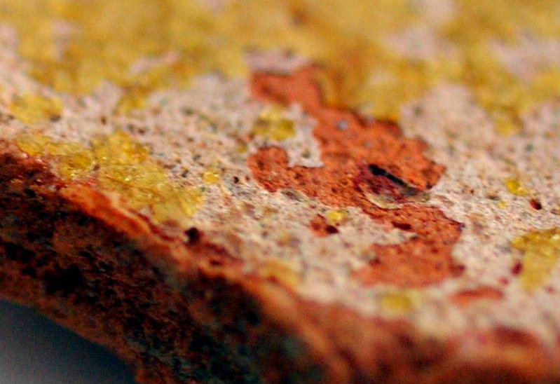 - Schade door lijm/vernis: het vastzetten van een fragiele versieringslaag met eender welke lijm- of vernissoort veroorzaakt veelal meer schade dan de schade die men aanvankelijk wou vermijden. Laat consolidatie over aan specialisten.