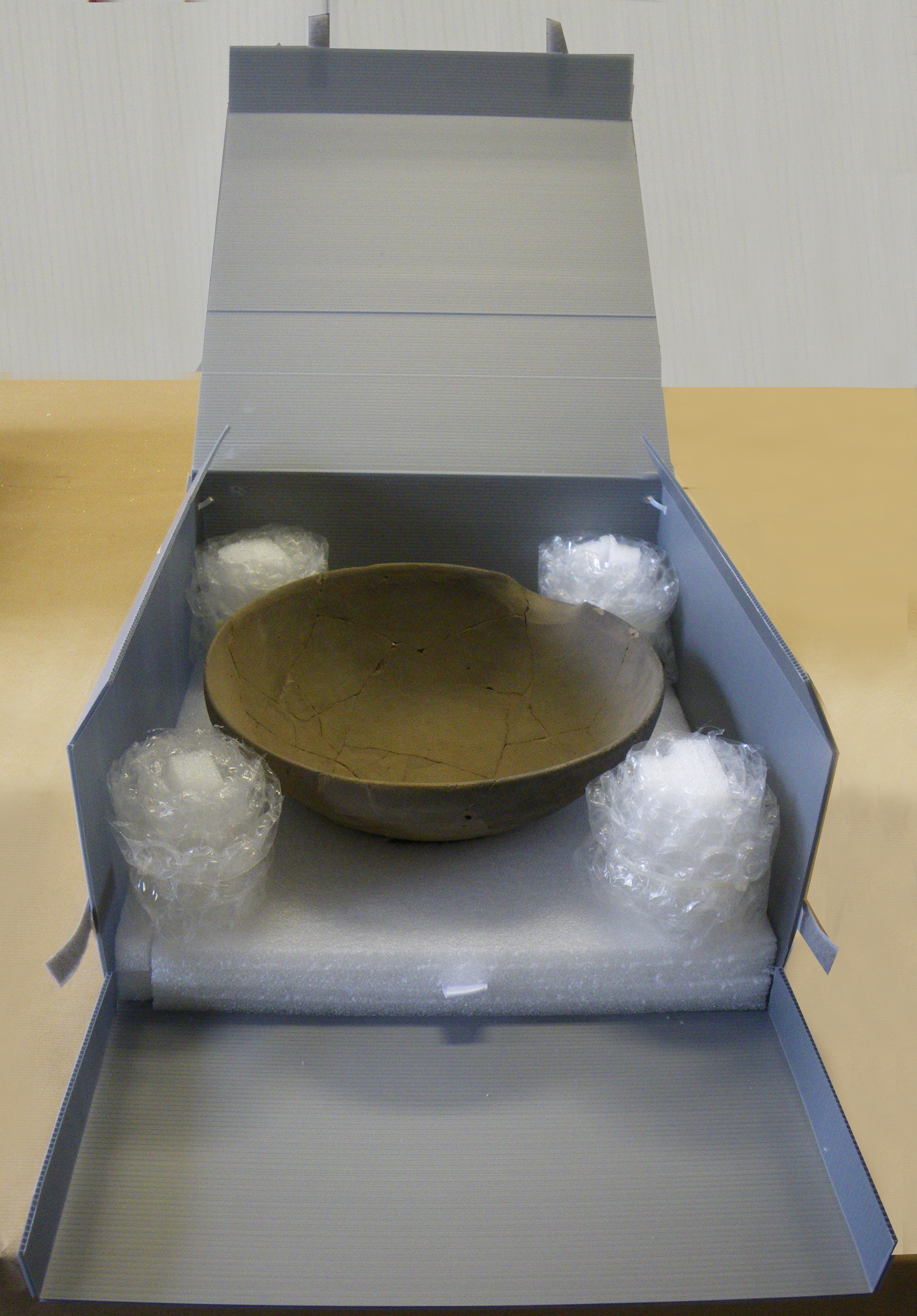 - Volledige of gereconstrueerde objecten verpak je afzonderlijk in een doos (PE of PP) met onderverdelingen, zodat ze niet tegen elkaar aanschuren. De onderverdeling maak je uit karton of (liever) PE-schuimplaat of PP-platen (polypropyleen).