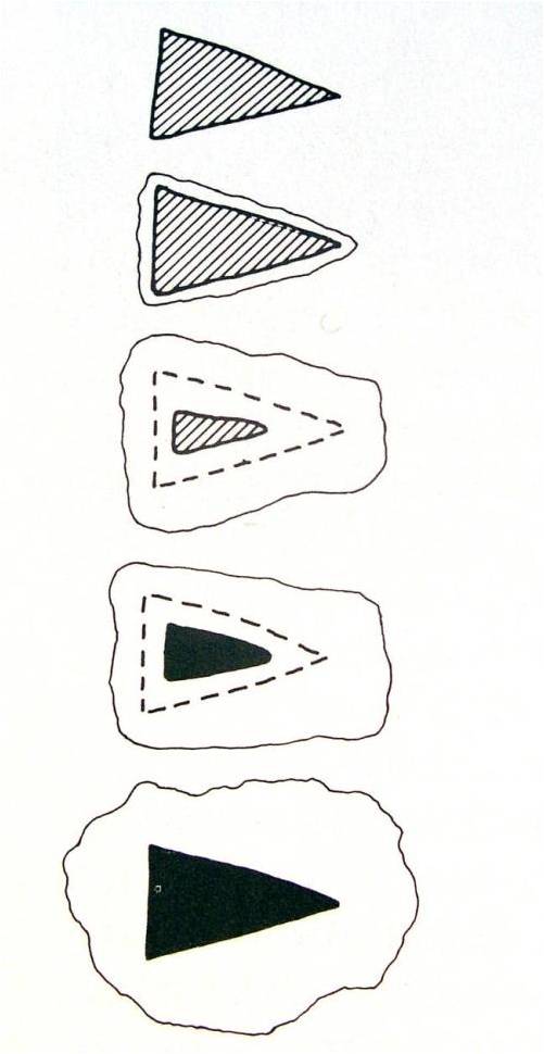 - Een tweede groep wordt deels gereinigd ter identificatie: de contouren op de röntgenfoto, samen met enkele goedgekozen gereinigde zones, geven genoeg informatie om een archeologisch volledig beeld (tekening) te krijgen.