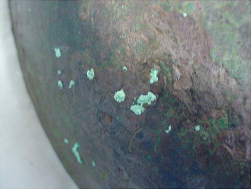- Het voordeel van koperlegeringen is dat de originele contouren, het 'originele oppervlak' mét alle details, meestal bewaard blijft ín de corrosielagen.