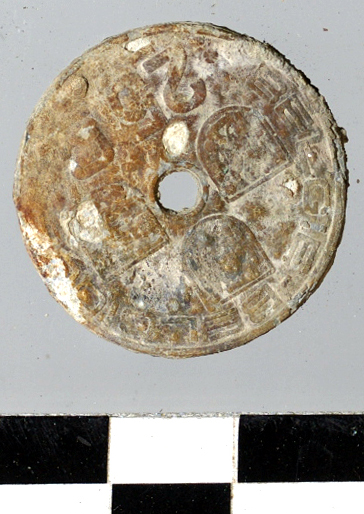 - Sommige vondsten komen zowat ongeschonden uit de bodem. Toch zullen de meeste corroderen, met als resultaat een witgrijze tot lichtbruine corrosielaag. De compacte laag kan het object beschermen en het corrosieproces doen stilvallen. Toch is het object hiermee niet beschermd tegen agressieve stoffen, zoals chloriden. Als die in het object doordringen, ontstaan er putten en gaten of verpoedert het gehele object (volledige mineralisatie).