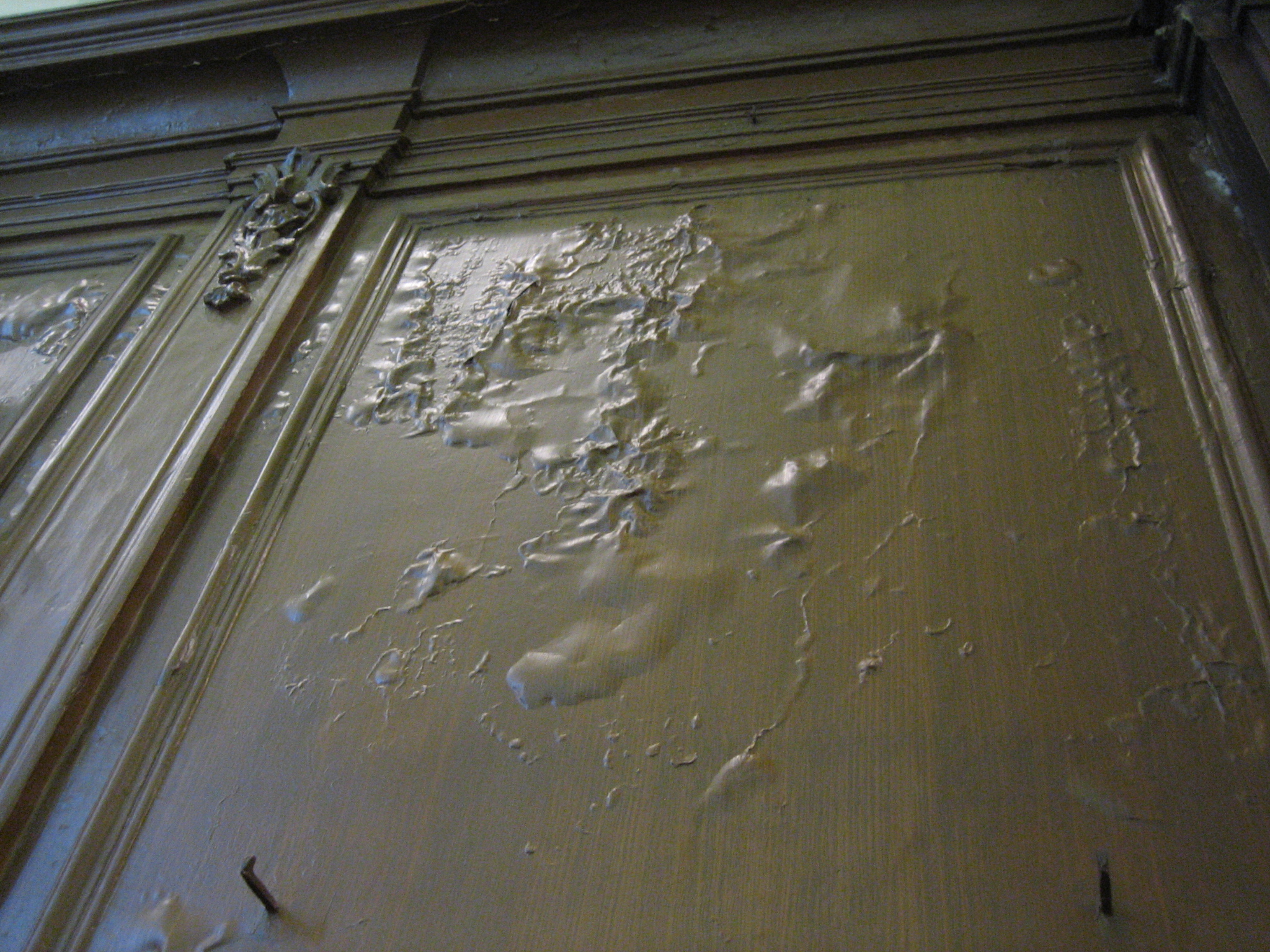 - afschilferende verf (kan ook een gevolg zijn van verf van slechte kwaliteit, slecht aanbrengen of hoge fluctuaties in de RV)