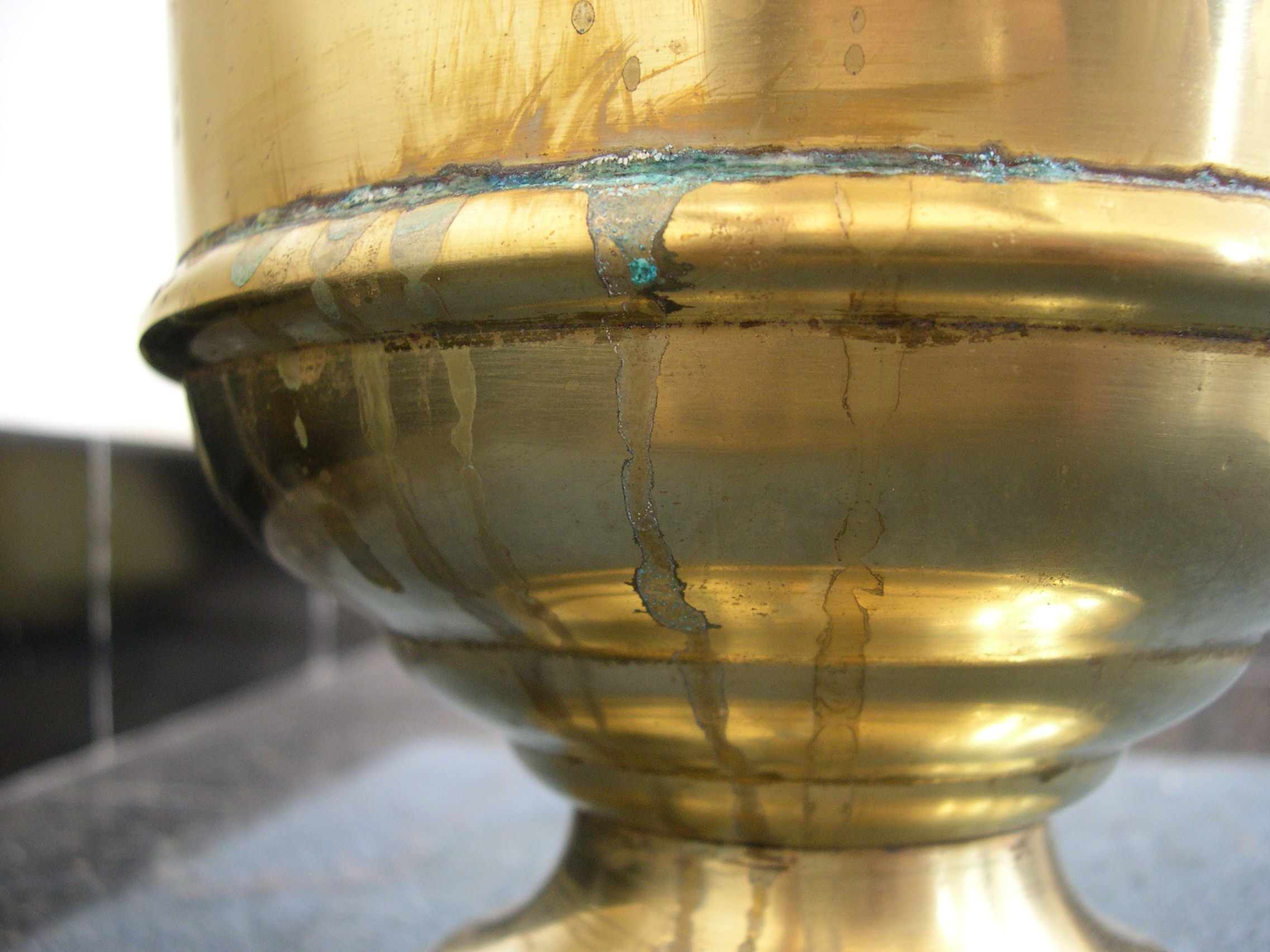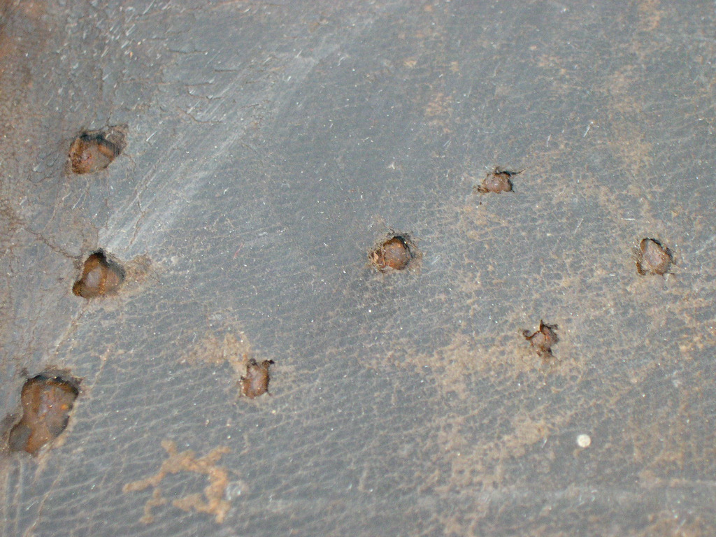 - in het materiaal. Bij poreuze materialen dringen de chemicaliën door en veroorzaken ze een verandering in de structuur; het gaat dan om een fysische verzwakking. Dat komt vooral voor bij dunne materialen zoals papier en textiel. De schade is onherstelbaar.